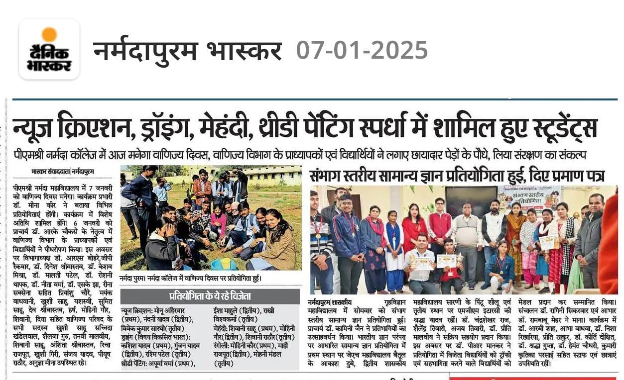 Miss Yashasvi Thakur was awarded the National Service Scheme C Certificate by Principal Dr. R.K. Chouk sir on 4 Nov